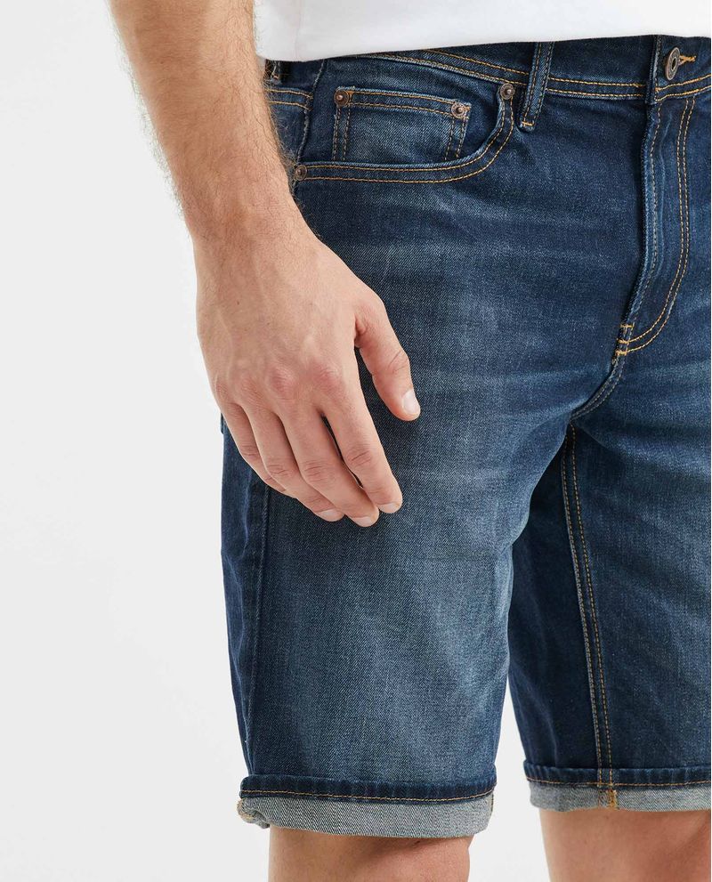 Bermuda de Hombre en Denim, Straight Fit - Azul Oscuro Efecto Vintage