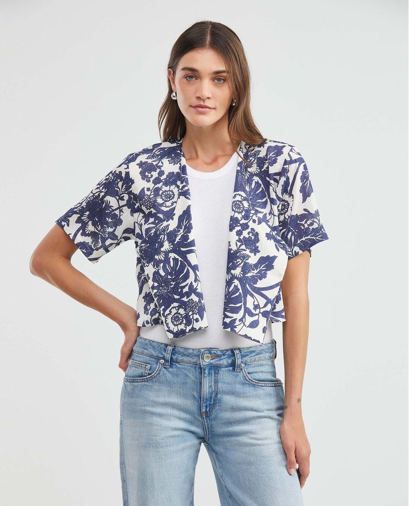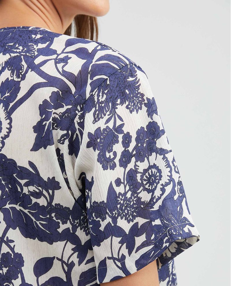 Blusa de Mujer, Tipo Crop Silueta Amplia Manga Corta Escote en V - Maxi Print Flores