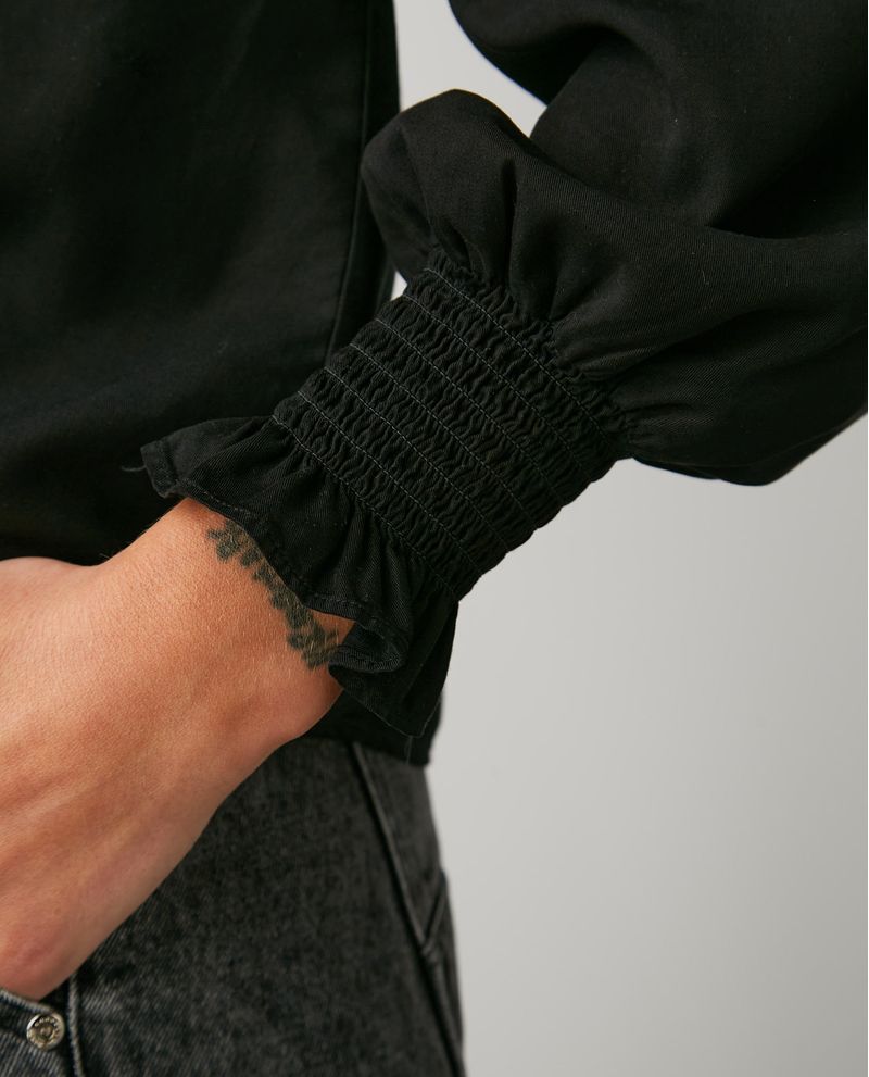 Camisa de Mujer, Silueta Amplia Manga Larga Escote en V - Detalle Cruzado Frontal