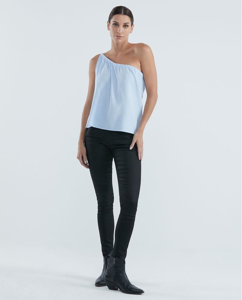 Camisa de Mujer, Silueta Recta Escote Asimétrico Un Hombro - Anudado