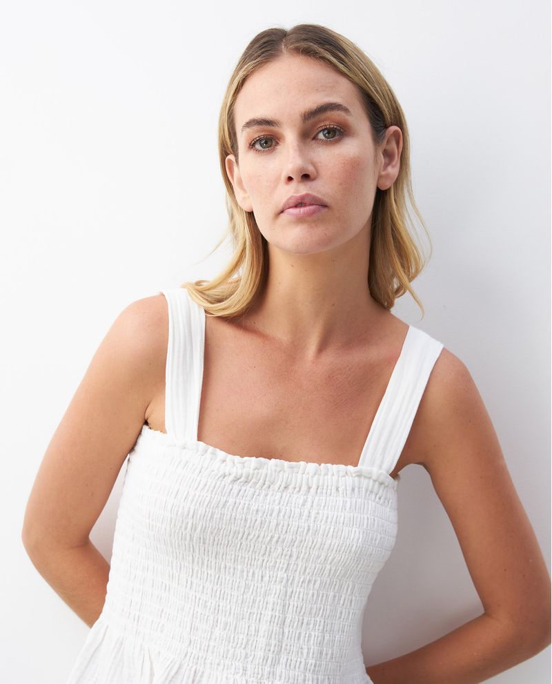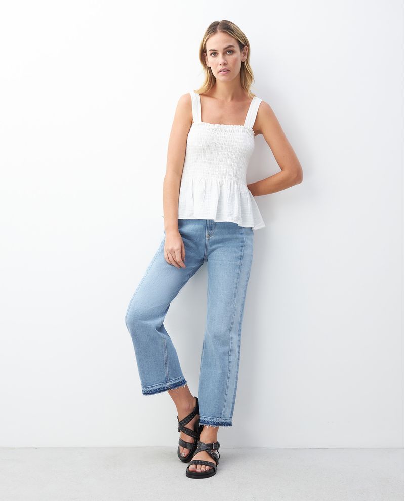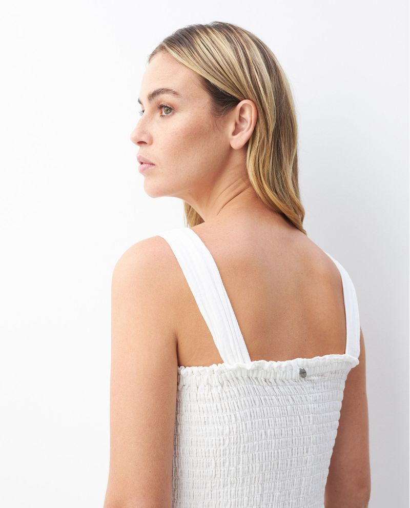 Camisa de Mujer, Tirantes Amplios Escote Cuadrado - Nido de Abeja y Vuelo