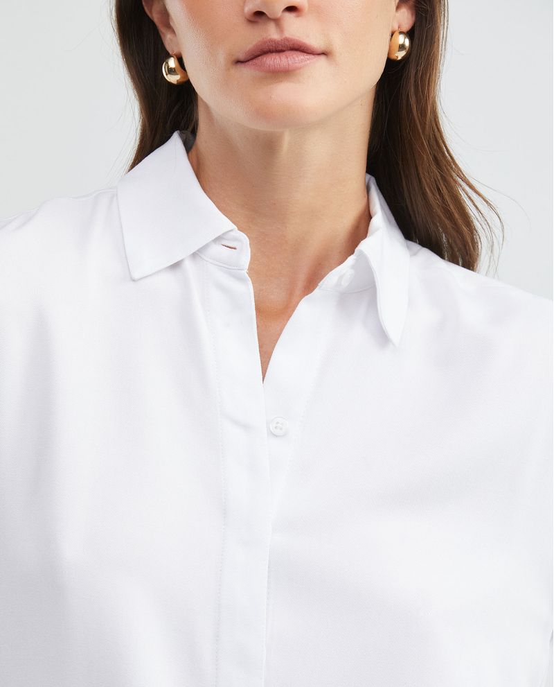 Camisa de Mujer, Silueta Ajustada Manga Larga Cuello Camisero - 100% Rayón Diagonal Marcada