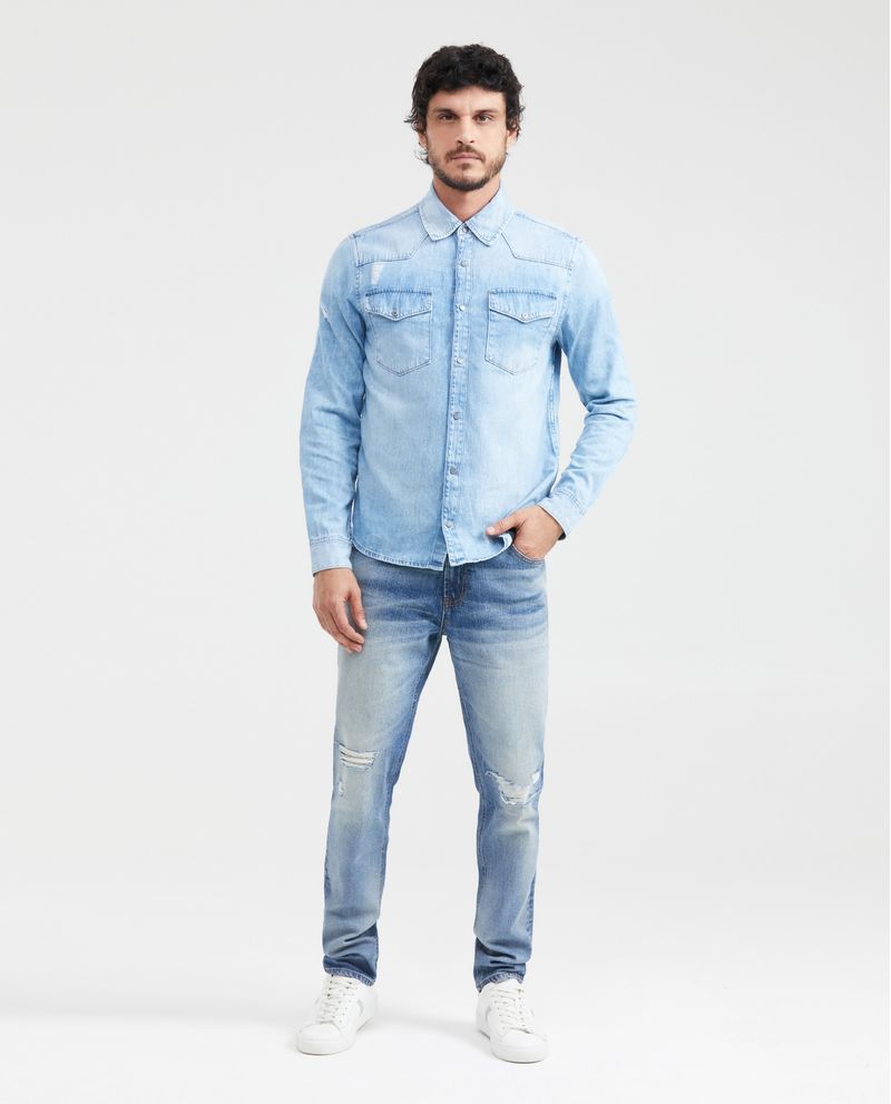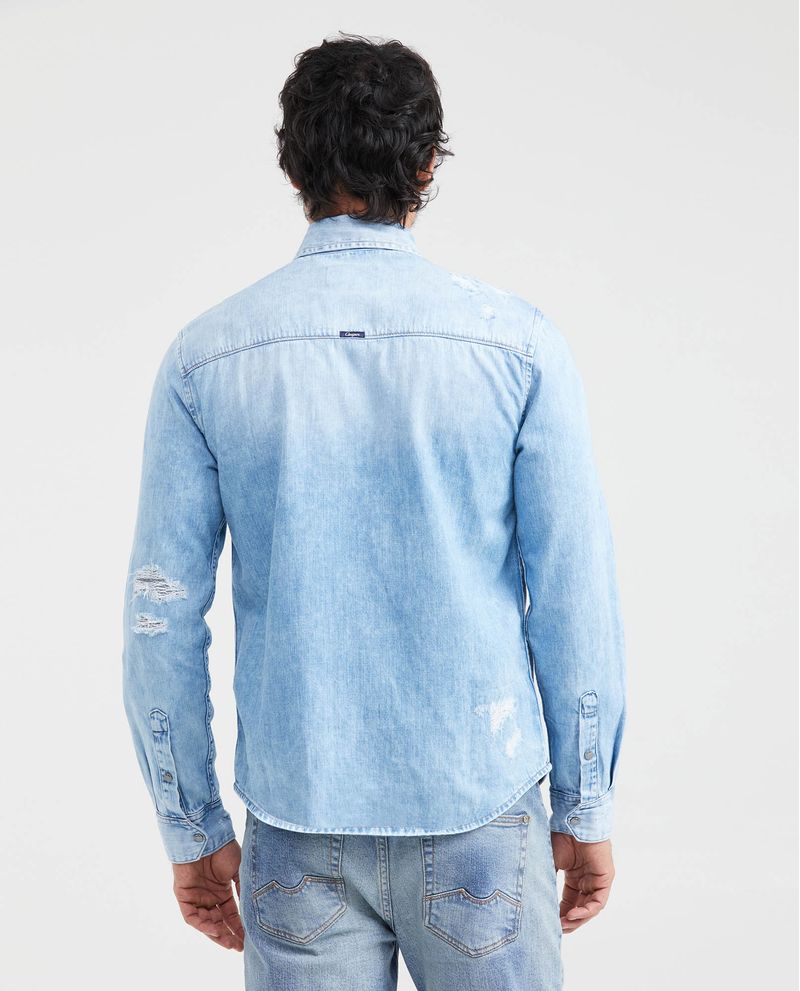 Camisa en Denim 100% Algodón Slim Fit Manga Larga Azul Claro para Hombre