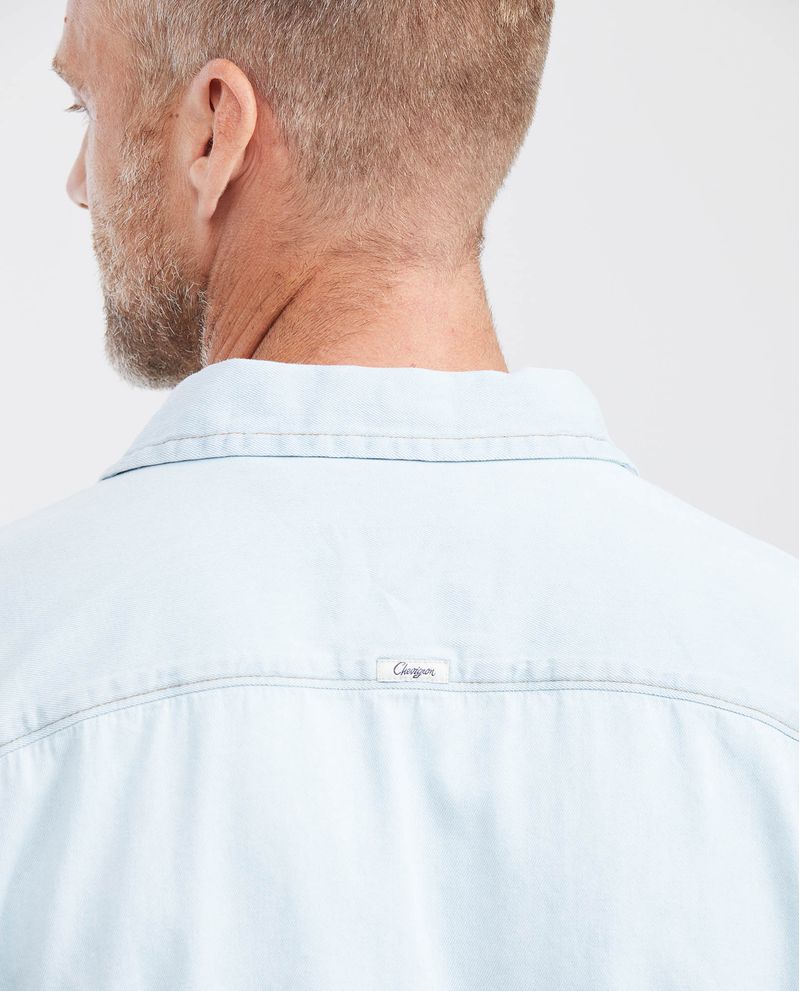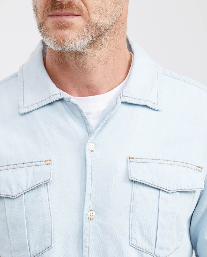 Camisa en Denim Slim Fit Manga Corta Azul Claro para Hombre