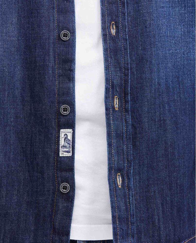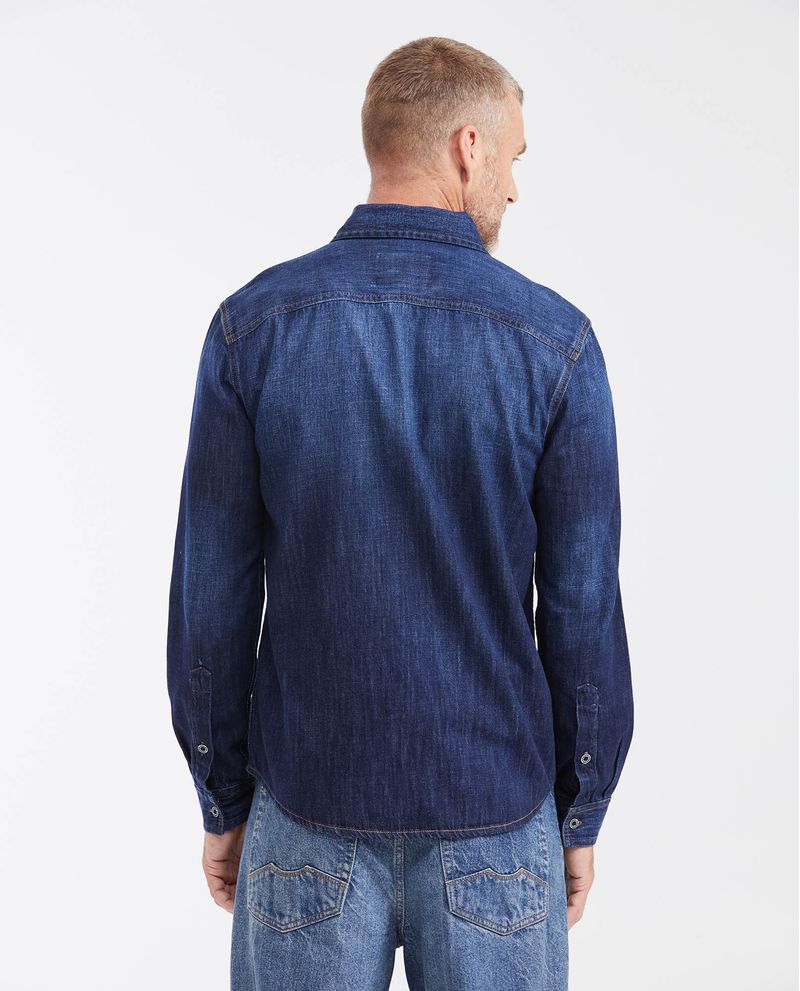 Camisa en Denim Slim Fit Manga Larga Azul Oscuro para Hombre