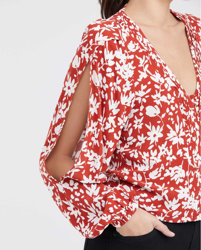 Camisa Estampada con Aberturas en Mangas para Mujer