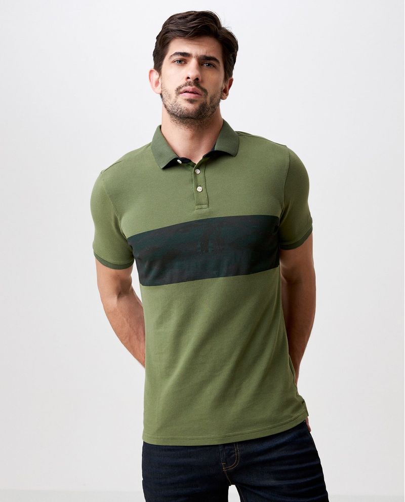 Camiseta de Hombre Tipo Polo, Slim Fit Manga Corta - Bloque de Color Frontal