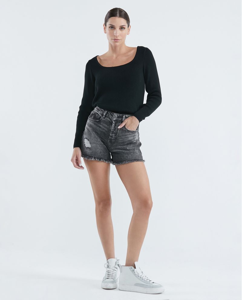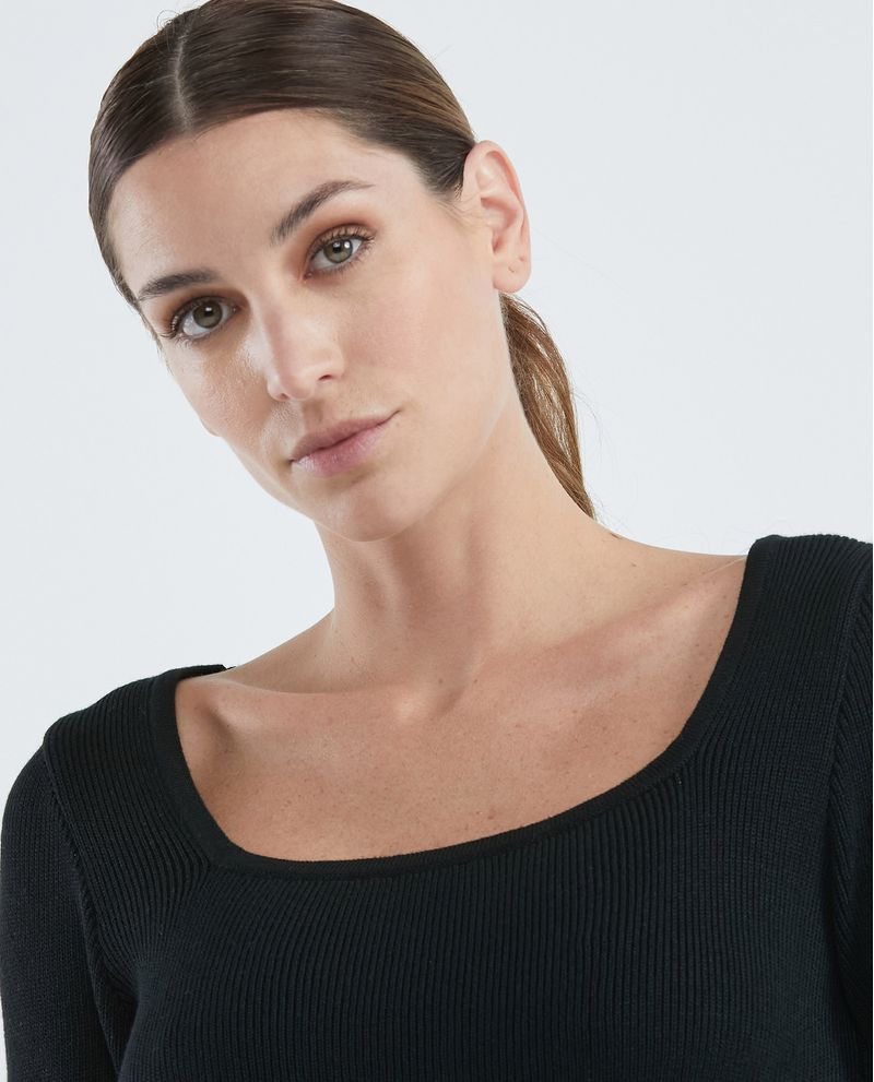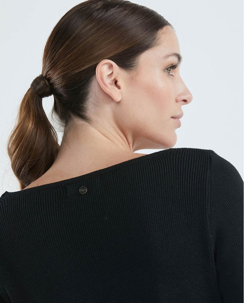 Camiseta Tejida de Mujer, Silueta Ajustada Manga Larga Escote Asimétrico - Galga Súper Liviana
