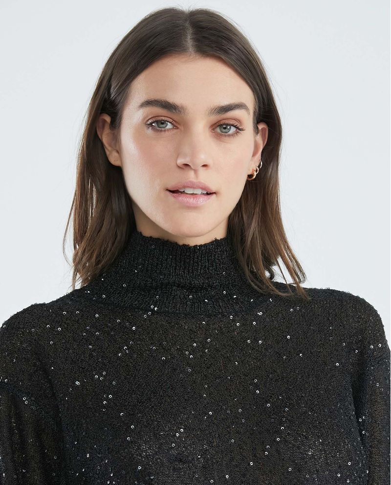 Camiseta Tejida de Mujer, Silueta Amplia Tejido con Lentejuelas - Galga Media