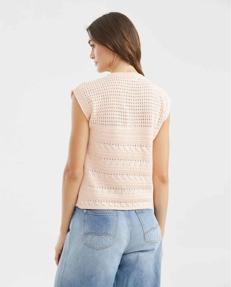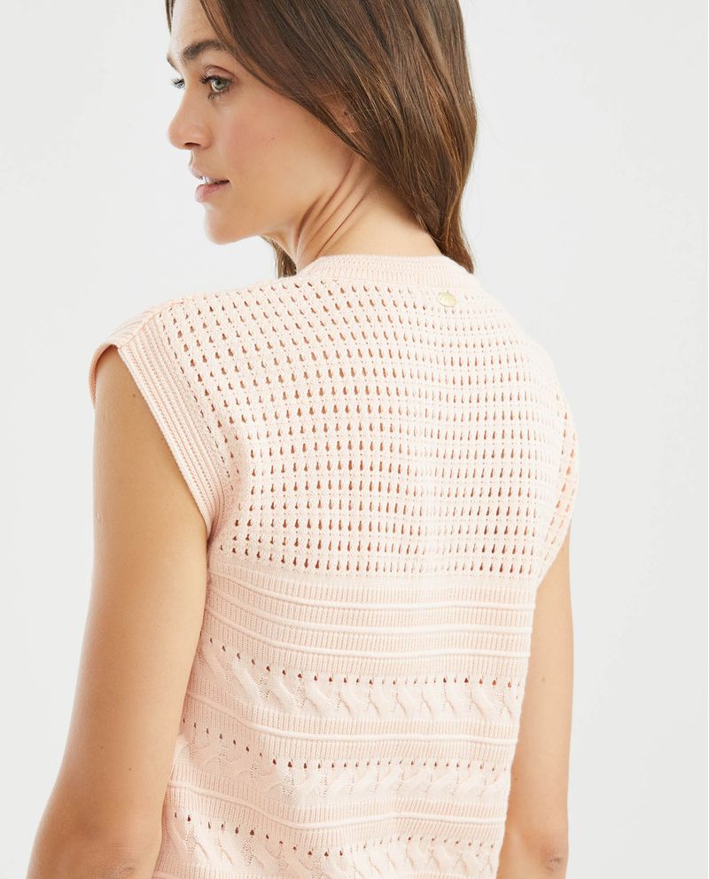 Camiseta Tejida de Mujer, Silueta Recta Cuello Redondo Manga Sisa - Galga Media