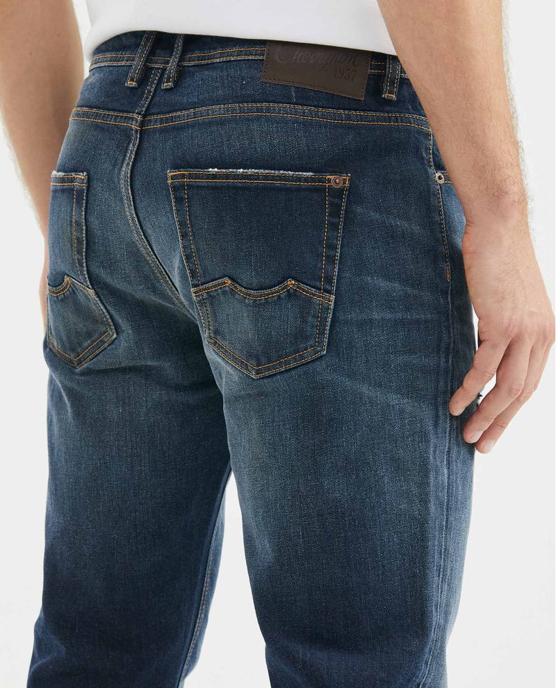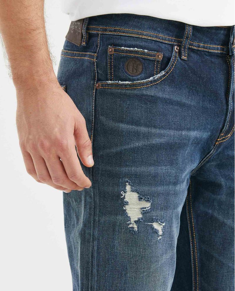 Jean de Hombre Super Slim Fit, Rider, Bota Slim - Azul Ultra Oscuro Vintage + Rotos