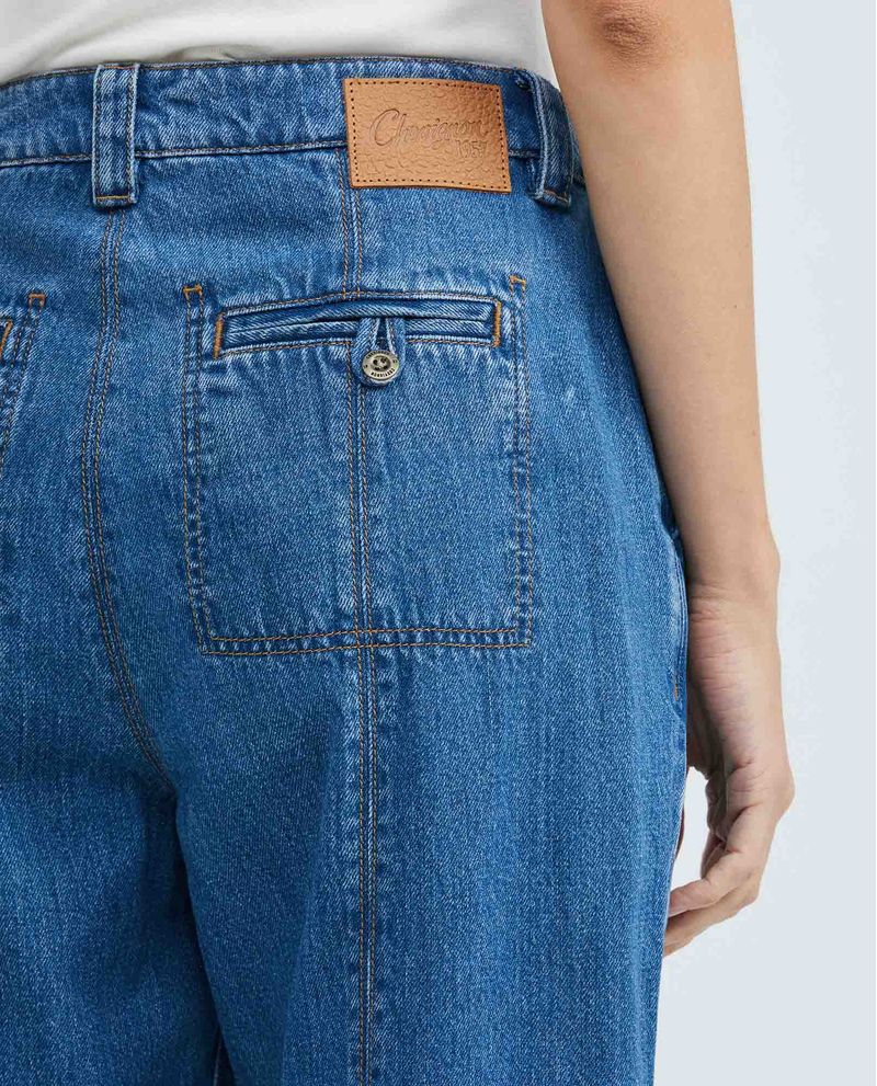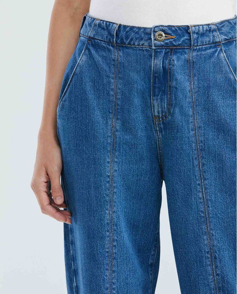 Jean de Mujer Ballon Leg, Bota Ajustable - Azul Medio