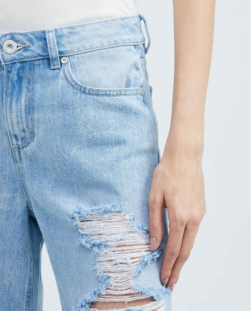 Jean de Mujer High Rise, Cosmo, Bota Relaxed - Azul Claro + Rotos