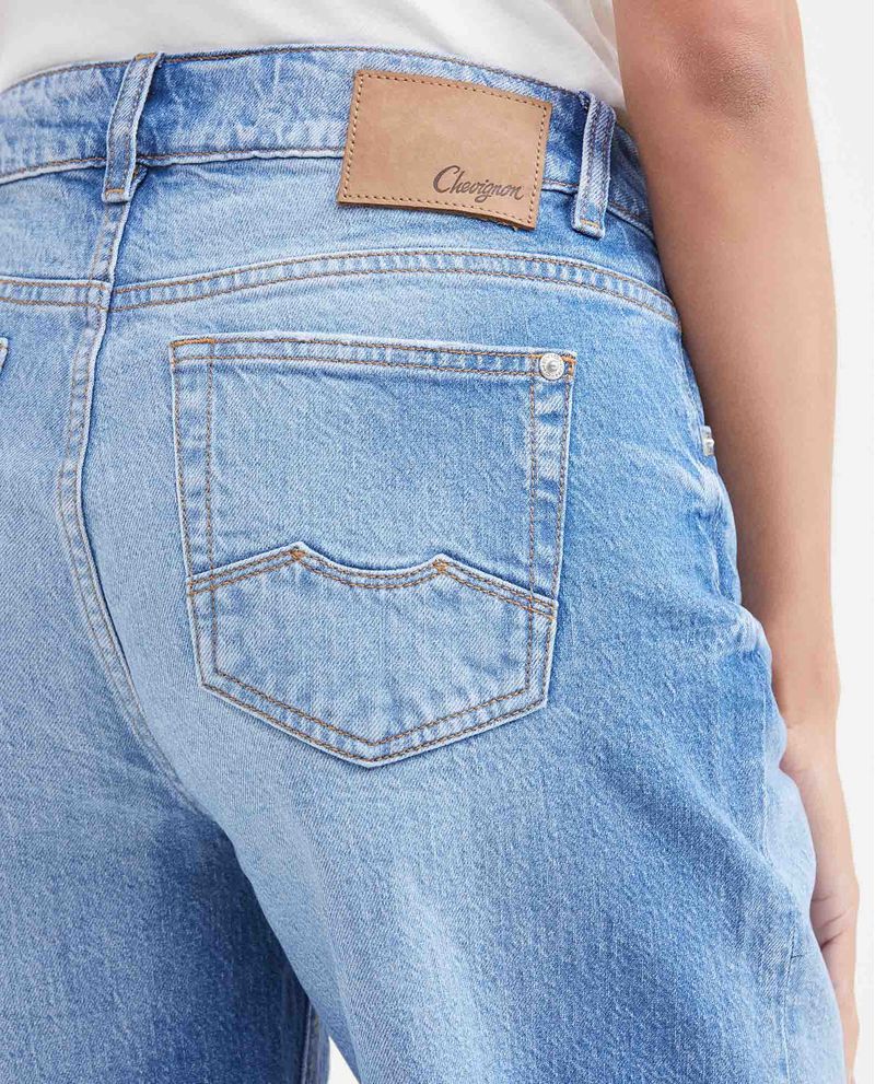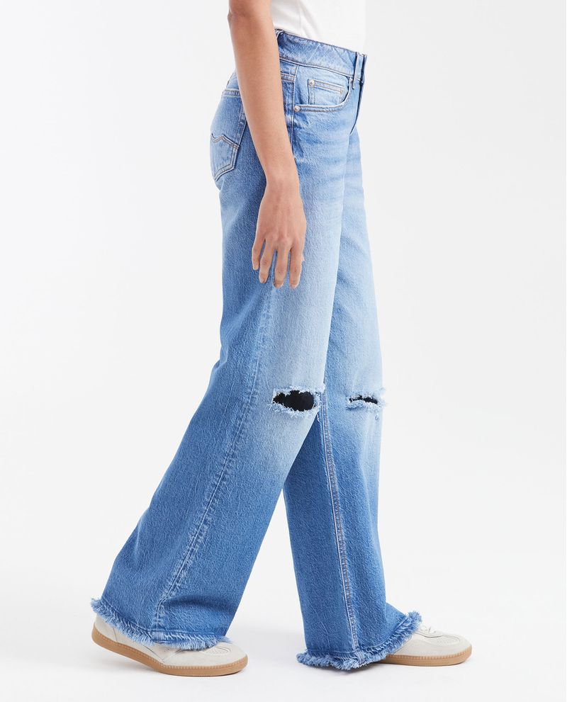 Jean High Rise Bota Relaxed Azul Medio con Rotos para Mujer