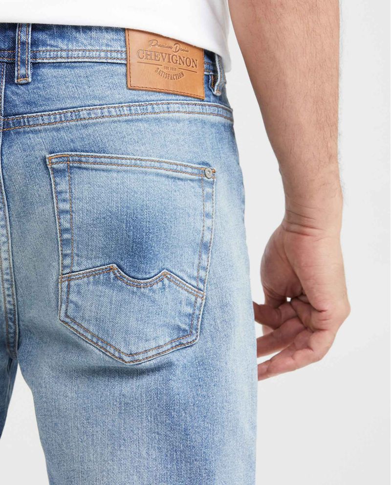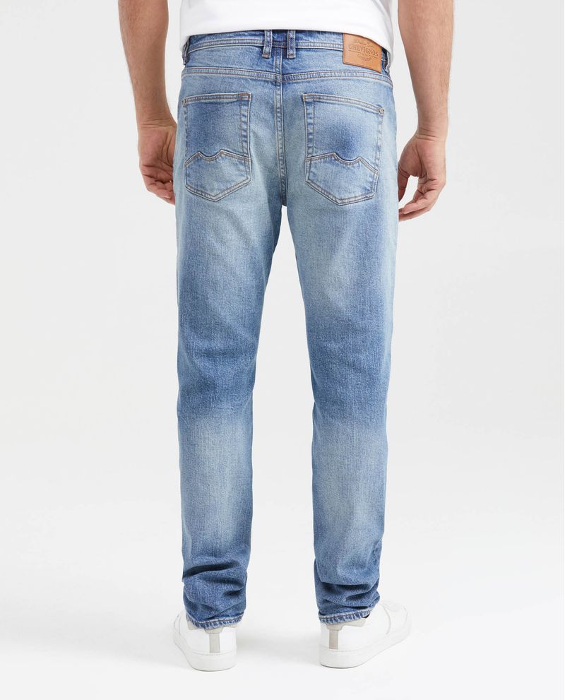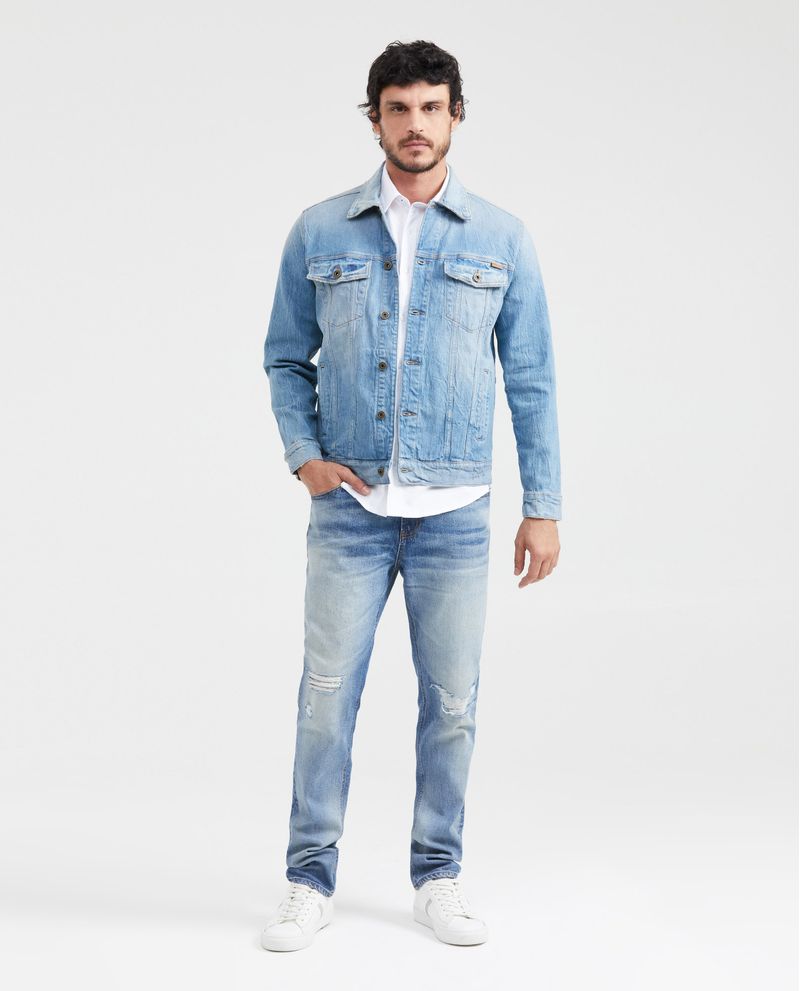 Jean Straight Fit Tiro Medio Bota Slim Azul Claro Lavado Vintage para Hombre