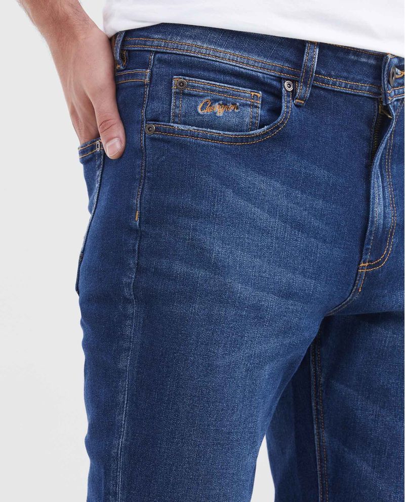 Jean Straight Fit Tiro Medio Bota Slim Azul Ultra Oscuro para Hombre