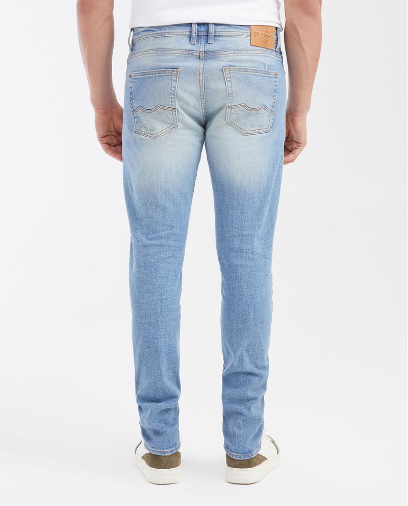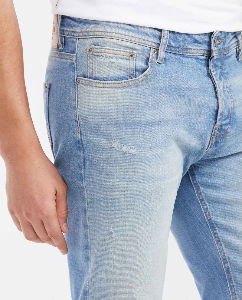 Jean Súper Slim Fit Tiro Bajo Bota Super Slim Azul Claro Lavado Vintage para Hombre