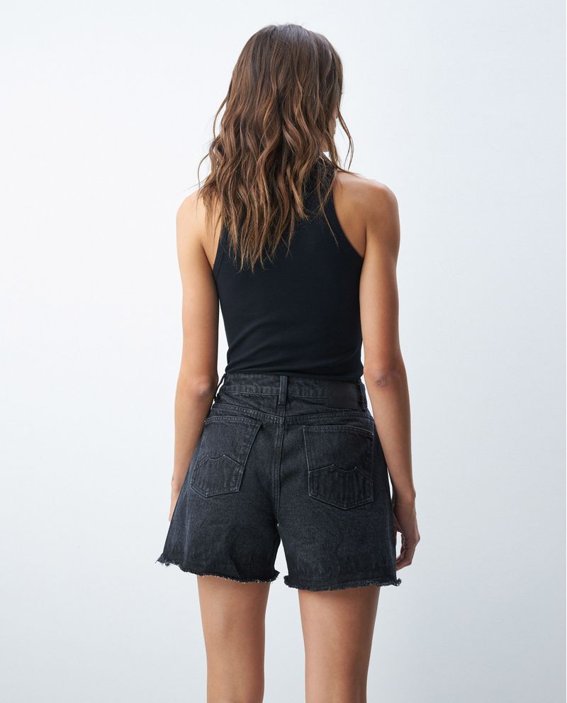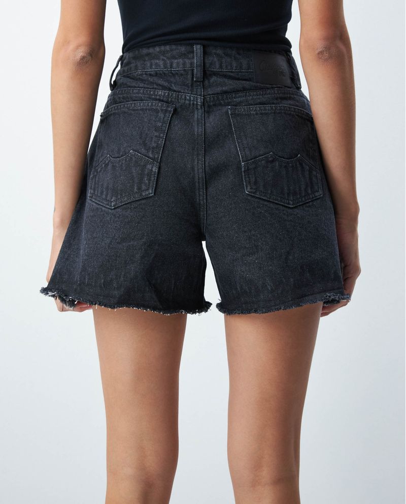 Short de Mujer en Denim Rígido, High Rise - Negro